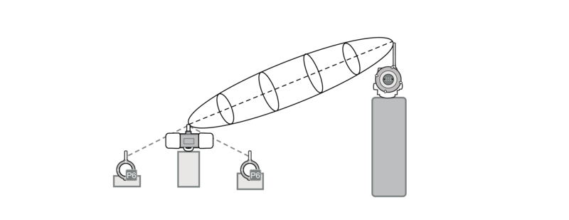 FN110 besteht aus einer Antenne und einem ISA100 WirelessTM-Modul. FN110 ist mit einem Schnittstellenadapter (LN90) verbunden, der die Verbindung zu einer Auswerteeinheit über Modbus RTU herstellt.